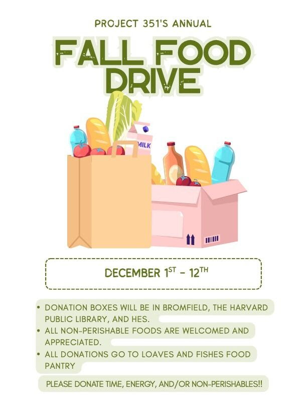 You are also welcome to purchase items at your preferred grocer and drop items off to Stacey Kenneally's home 55 Ann Lees Rd, Harvard, 01451  There will be a labeled plastic bin outside the front door.