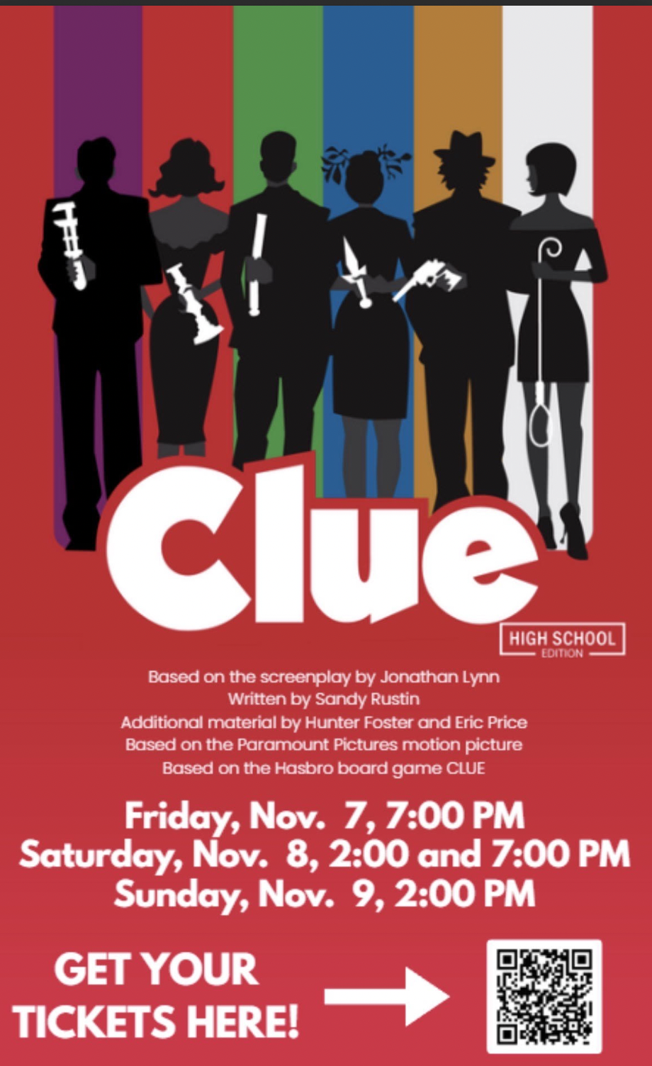 • Friday, Saturday, Sunday Nov 7,8,9 Clue (HS Fall Play!)